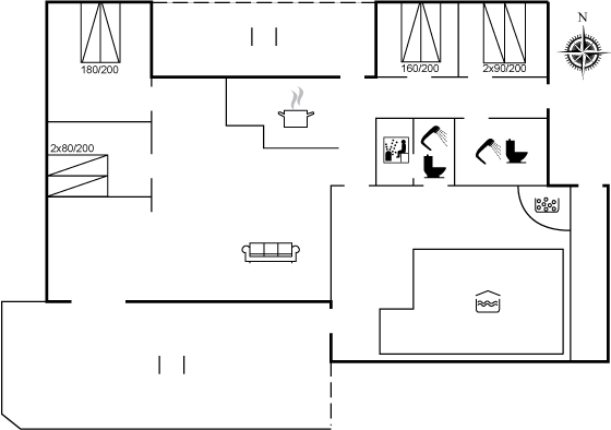 Sommerhuset er egnet for 8 personer samt 1 barn opp til 3 år. Ferieboligen har et bebodd areal på 143 m² og er bygget i 2000. 1 stykk husdyr tillatt. Det er solvarme. Ferieboligen har vaskemaskine. Tørketrommel. Frysekapasitet på 44 liter. Også trepilleovn. Til de små er det 1 stk. barnestol.