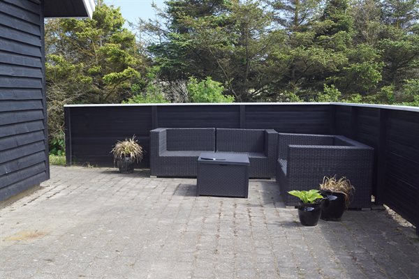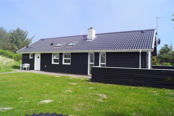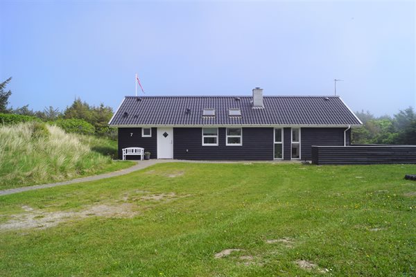 Prachtvolles Ferienhaus und schöne Terrassenbereiche mit gutem Windschutz. Das Haus ist mit einem offenen Obergeschoss.