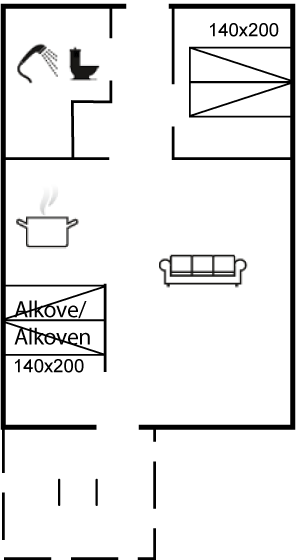 • 4 Personen   • Grundstück 45 m2   • In 1987 gebaut.  • 1 Schlafzimmer   • 2 Haustier(e) erlaubt