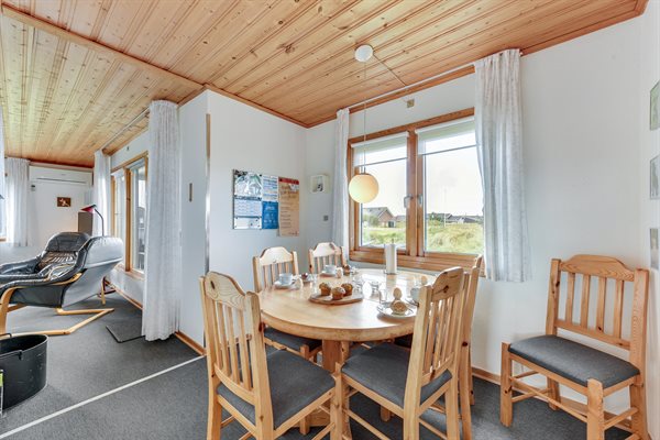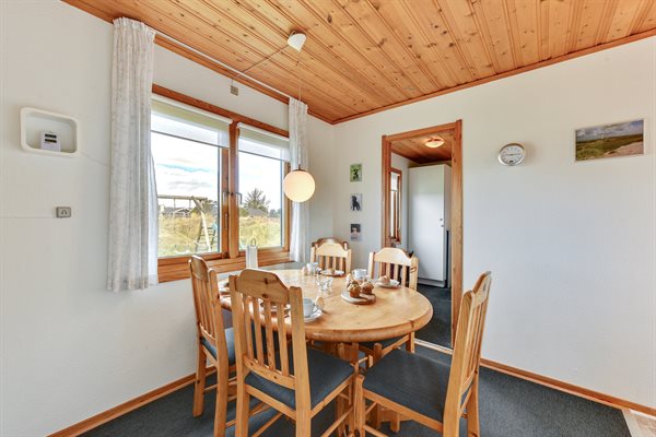 Gutes, gepflegtes Ferienhaus aus Holz, 1986 gebaut, auf einem Naturgrundstück gelegen. Offene und überdachte Terrasse mit Gartenmöbeln. Teppichboden, in der Küche jedoch PVC-Boden. Badezimmer mit Duschnische. Tiefkühlgerät, Geschirrspüler und Umluftofen in der Küche. Das Wohnzimmer enthält Kaminofen, Stereoanlage mit CD-Spieler, DVD-Spieler und TV mit Satellitenanschluss. Außerdem kostenlose, kabellose Internetverbindung (Computer ist mitzubringen),Kinderhochstuhl und Waschmaschine vorhanden. Sandkasten, Schaukel und Rutsche für die Kinder. Ein gemütliches Ferienhaus in einem Gebiet mit vielen Aktivitätsmöglichkeiten gelegen. Nur wenige Autominuten zur Hafenstadt Hvide Sande mit Restaurants, Einkaufsmöglichkeiten, Hafen u.a.m. Übrigens: Es ist nicht erlaubt Katzen mitzubringen.