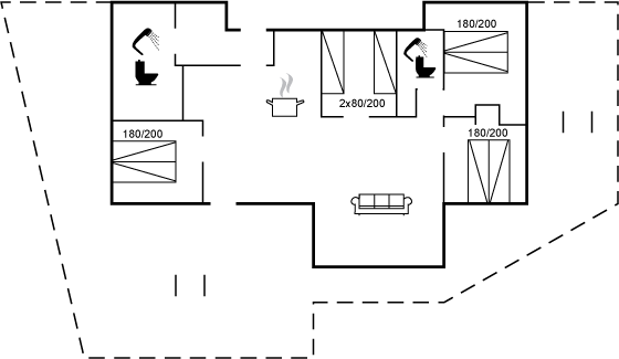 Das Ferienhaus verfügt über vier gemütlich eingerichtete Schlafzimmer, von denen drei mit Doppelbetten und das vierte mit zwei Einzelbetten ausgestattet sind.