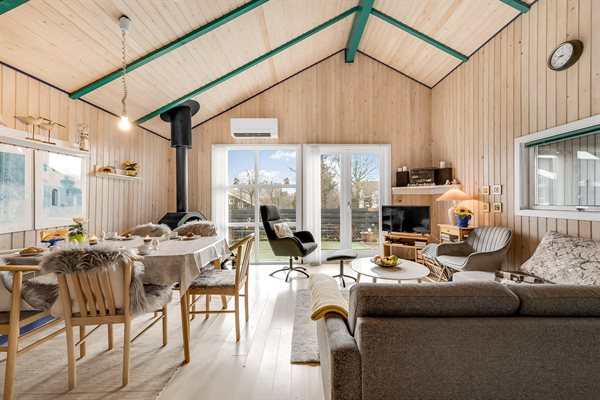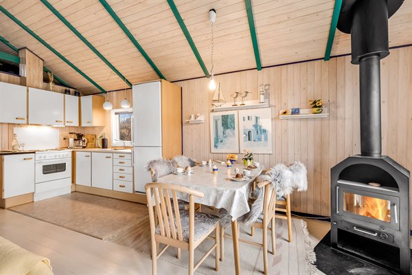 Dieses schöne und gepflegte Ferienhaus aus Holz, 1997 gebaut liegt auf einem kleinen Naturgrundstück in Bork Hytteby. Zum Haus gehört eine schöne, abgeschirmte Terrasse mit Gartenmöbeln. Innen sind die Böden mit Holz ausgelegt. Gutes Badezimmer mit Fußbodenheizung und Duschnische. Die gut eingerichtete Küche ist u. a. mit Mikrowelle und Tiefkühlgerät ausgestattet. Die Küche ist mit dem gemütlichen Wohnzimmer, das Kaminofen, TV mit digitalem Satellitenanschluss, Stereoanlage und DVD-Spieler enthält, kombiniert. Die Schlafplätze des Hauses verteilen sich auf 2 Zimmer mit je 1 Doppelbett sowie 1 Schlafplatz im offenen Obergeschoss. Ferner stehen Kinderbett zur verfügung. Ein gepflegtes Ferienhaus in einem naturschönen Gebiet mit guten Surfmöglichkeiten. Besuchen Sie auch den kleinen gemütlichen Hafen in Bork.