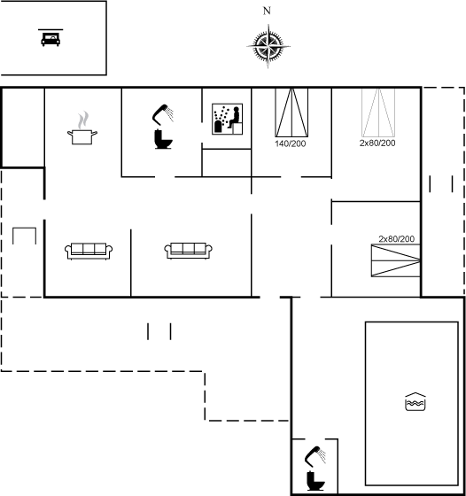 Das Ferienhaus liegt in der Nähe eines großen gemeinsamen Aktivitätsbereichs mit unter anderem Hüpfburg, und es sind nur 20 Minuten Fahrt zu den herrlichen Stränden der Westküste - Blåvand und Vejers.