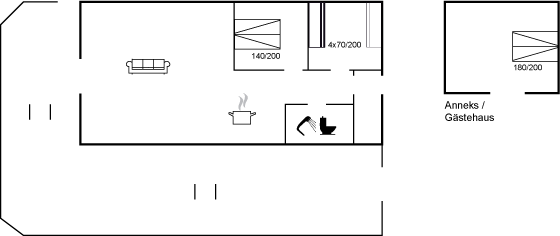 An kühleren Tagen kannst du es dir drinnen gemütlich machen – mit einem guten Buch oder vor dem Fernseher, wo du TV2 Play, Viaplay und Nordisk Film streamen kannst. Es gibt eine Internetverbindung mit einer Geschwindigkeit von 1000/1000 Mbit.