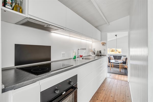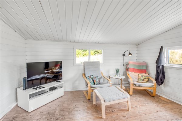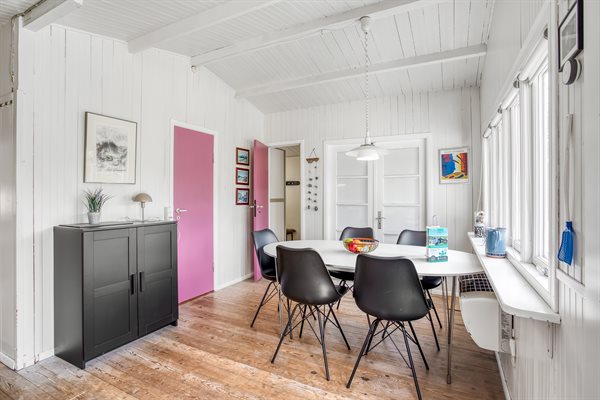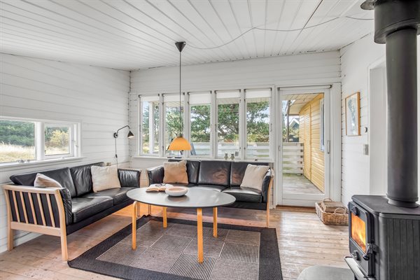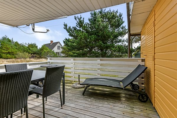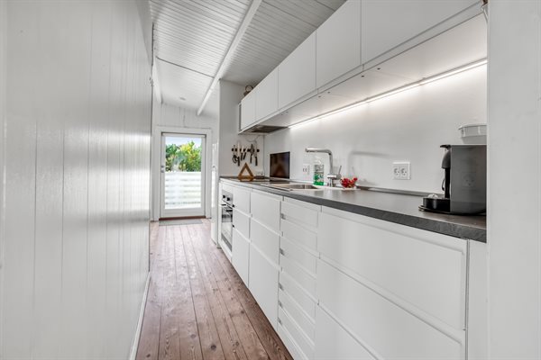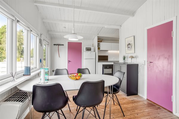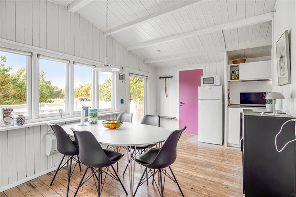 Ein einfaches, aber gemütlich eingerichtetes Ferienhaus auf einem schönen, von Kiefern umgebenen Grundstück gelegen. Zum Haus gehören eine geschlossene und teilweise überdachte Terrasse sowie eine teilweise abgeschirmte Terrassen. Die Küche ist mit dem Essbereich kombiniert, und nach einer leckeren Mahlzeit könnt ihr euch beim Abwasch noch gemütlich unterhalten, da es im Haus keine Geschirrspülmaschine gibt. Das Badezimmer ist nett, aber schon älteren Jahrgangs.