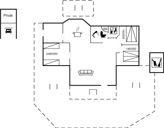 Das Haus liegt auf einem großen, mit Heide bewachsenen Grundstück, das teilweise von schützender Bepflanzung umgeben ist – ideal für ruhige Stunden und die Privatsphäre. Die große Terrasse bietet dir den ganzen Tag über perfekte Bedingungen für den Aufenthalt im Freien.