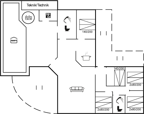 Dieses gepflegtes Ferienhaus mit viel Platz, das durch die Jahre renoviert ist, liegt auf einem schönen Grundstück, wo die Möglichkeit besteht Rehe und anderes Wild zu sehen. Ruhige Umgebung ohne Verkehr. Das Ferienhaus enthalt 2 Schlafplätze im gemütlichen Obergeschoss sowie ein großes Wohnzimmer mit Fensterfront in Richtung Süden, Aussicht über die Swimmingpool-Abteilung und Zutritt zur gegen Süden und Westen gerichteten Terrasse.
