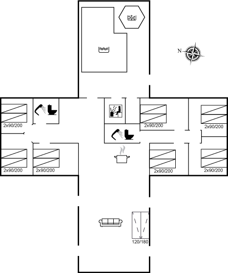 Dieses herrliche und geräumige Ferienhaus, auch für mehrere Familien geeignet, liegt auf einem großen Grundstück mit Platz für Ballspiele und andere Aktivitäten im Freien – es gibt u. a. einen Beachvolleyplatz. Zum Haus gehören 3 schöne Terrassen – hier können Sie den ganzen Tag hindurch die Sonne genießen. Fußbodenheizung in beiden Badezimmern. Übrigens: 2 Schlafplätze auf einer Doppelschlafcouch im Wohnzimmer und 4 Schlafplätze auf Matratzen im offenen Obergeschoss.