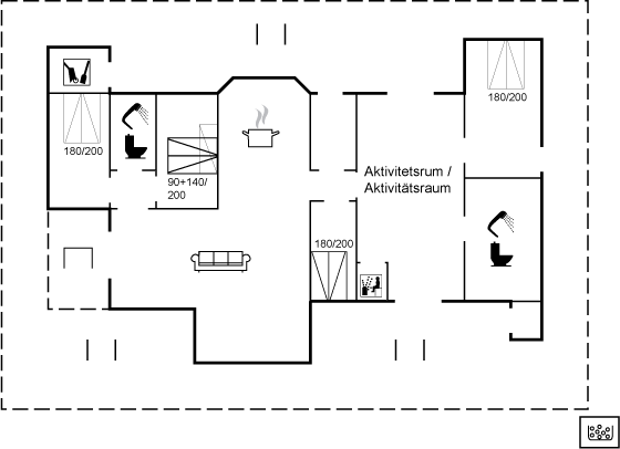 Ein fantastisches Wellness-Ferienhaus für die ganze Familie. Willkommen in diesem besonders schönen Wellness-Ferienhaus, das Luxus, Gemütlichkeit und jede Menge Platz miteinander verbindet! Das Haus bietet Platz für bis zu 11 Erwachsene und 2 Haustiere und ist perfekt für einen Familienurlaub oder für Freundesgruppen, die Qualitätszeit in einem komfortablen Haus verbringen möchten geeignet. Entspanne dich im Außen-Whirlpool oder in der Sauna des Hauses, während diejenigen, die etwas mehr Action mögen, sich im Aktivitätsraum vergnügen können. Das Leben im Freien steht hier im Mittelpunkt: eine große, sonnige Terrasse mit Grill bietet reichlich Gelegenheit für Entspannung und gemütliches Beisammensein unter freiem Himmel. Als besonderes Extra ist das Ferienhaus mit einer Rollstuhlrampen und extra breiten Türen zu Schlafzimmern u.?v.?m. ausgestattet, sodass es für alle leicht zugänglich ist.