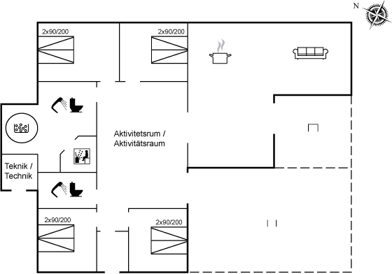Dieses herrliche Ferienhaus liegt auf einem leicht hügeligen Grundstück dicht an einem kinderfreundlichen Badestrand. Es gibt ein separates Gebäude mit Swimmingpool, Dampfkabine und Badezimmer mit Dusche. Dieses Gebäude wird mit einer Luft-Wasser-Wärmepumpe beheizt. Übrigens: Es gibt 2 offene Obergeschosse – davon ist das eine mit Doppelbett eingerichtet.