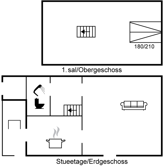 Achtung! Die Treppe zum Dachboden ist steil. Das Haus wird ausschließlich mit Fernwärme beheizt – mit Fußbodenheizung in der Küche und im Badezimmer.