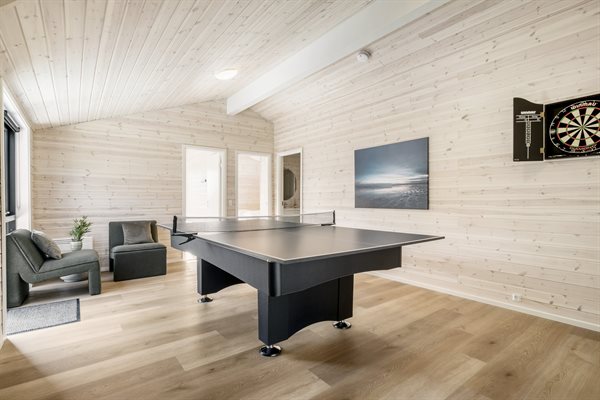 Es stehen zwei separate Familienbereiche zur Verfügung, die sich an den gegenüberliegenden Enden des Hauses befinden - beide mit eigenem Badezimmer. Der große Wohn- und Essbereich mit Küche hat eine angenehme Deckenhöhe und gute Akustik und ist der natürliche Treffpunkt des Hauses. Der Aktivitätsraum ist schallisoliert, sodass du Poolbillard, Dart und Tischtennis spielen kannst, ohne den Rest des Hauses zu stören.