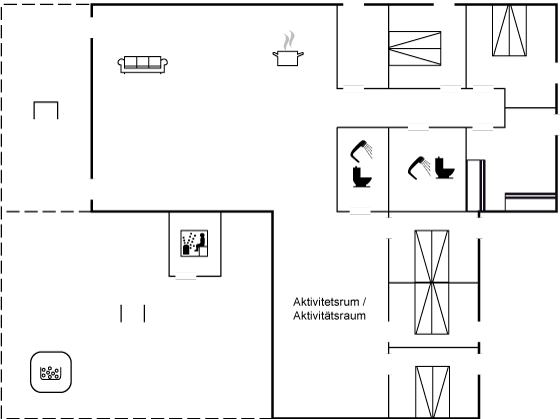 Der große Aktivitätsraum des Hauses ist der ultimative Treffpunkt, und das Haus bietet Unterhaltung für Gäste jeden Alters - für jeden Geschmack ist etwas dabei, damit niemand sich langweilt. Am Abend kann man sich auch in das separate Gästehaus schleichen, das als kleines und gemütliches Wohnzimmer eingerichtet ist.