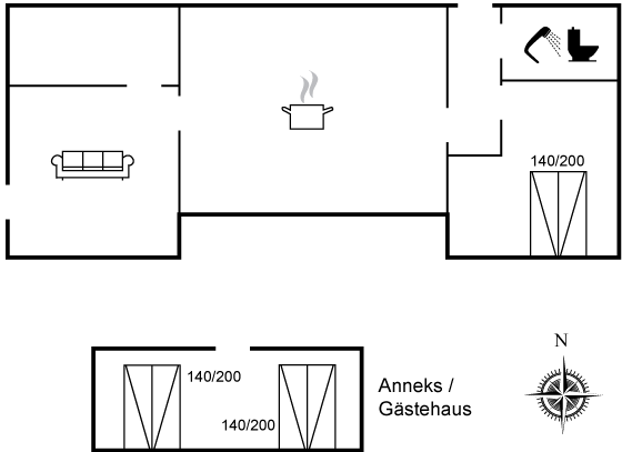 Im Inneren präsentiert sich das Ferienhaus in gutem Zustand und wurde im Jahr 2025 renoviert. Die Einrichtung ist hell und eignet sich gut für z. B. zwei Paare oder eine Familie mit größeren Kindern – 4 der Schlafplätze befinden sich in einem schönen und gepflegten Gästehaus. Insgesamt ist dies ein Ferienhaus, das beste Voraussetzungen für einen gelungenen Urlaub bietet.