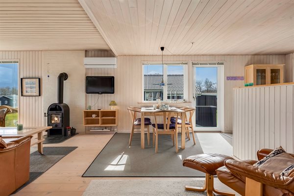 An der schönen Küste des Kattegats, nördlich von Juelsminde, findest du dieses gepflegte und einladende Ferienhaus – mit einer attraktiven Lage in einem beliebten Feriengebiet. Das Haus liegt nur 250 Meter vom Meer entfernt, und sowohl vom Hausinneren als auch von draußen kannst du den Blick auf das Wasser genießen. Durch die kurze Entfernung erreichst du den Strand schnell und bequem zu Fuß – dieser ist zudem schön und kinderfreundlich. Das Ferienhaus ist gepflegt und so eingerichtet, dass es ideal für eine Familie mit 2–3 Kindern oder ein Paar ist, das seinen Urlaub in herrlicher Umgebung verbringen möchte. Das Haus verfügt über einen großen, offenen Küchen- und Essbereich in Verbindung mit dem Wohnzimmer, von dem aus du ebenfalls die Aussicht genießen kannst. Diese lässt sich auch von den schönen Terrassenbereichen erleben, die teilweise überdacht sind. Hier hast du gute Möglichkeiten, ein windgeschütztes Plätzchen zu finden und die Ruhe zu genießen. Mit anderen Worten bietet dieses Ferienhaus den perfekten Rahmen für einen gelungenen Urlaub ganz in der Nähe des Wassers. Die Umgebung von Sønderby ist naturschön und lädt zu Spaziergänge ein, zum Beispiel am Strand entlang. Wenn du dir etwas Abwechslung zum ruhigen Feriengebiet wünschst, liegt die Stadt Juelsminde nur etwa 10 Kilometer entfernt – hier findest du unter anderem ein lebhaftes Stadtleben mit vielen Geschäften sowie eine schöne Hafenatmosphäre mit Eisdielen, Cafés und Restaurants.
