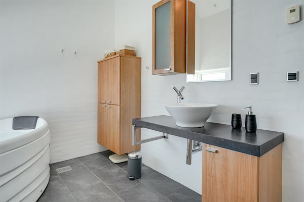 Schönes Ferienhaus aus Ziegelsteinen und Kandadischem Zedernholz gebaut. Das Ferienhaus liegt nur 8 Minuten Fußweg von einem der besten Badestrände in der Umgebung entfernt. Das Wohnzimmer ist lichtdurchflutet durch seine große Fensterpartie und mitten im Raum steht ein eingebauter moderner Kaminofen. Es gibt in Verlängerung mit der Garage einen eigenen Spielraum.