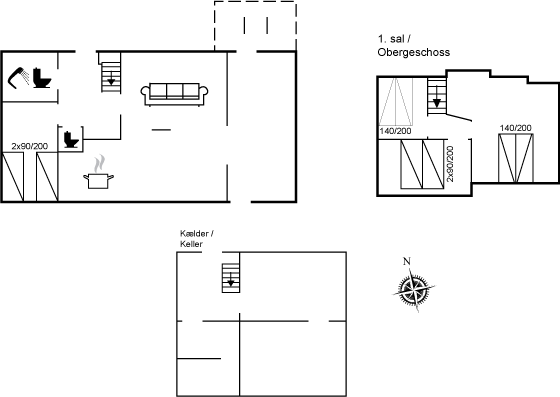 Das große Ferienhaus liegt mitten im Ort – etwas zurückgesetzt, sodass du Ruhe und Entspannung findest, wenn du sie brauchst. Im Erdgeschoss gibt es neben dem Wohnzimmer und dem Wintergarten eine gut ausgestattete Küche, ein Badezimmer sowie eine Gäste-Toilette. Ein Schlafzimmer mit verstellbaren Betten befindet sich ebenfalls im Erdgeschoss. Die weiteren Schlafzimmer sind im ersten Stock. Im großen Schlafzimmer mit der herrlichen Aussicht durch die großen Fenster in der Gaube gibt es eine kleine gemütliche Ecke – perfekt zum Lesen, Stricken oder einfach zum Rausschauen. Die Waschmaschine befindet sich im Keller. Eine Treppe führt hinauf zum Eingangsbereich.