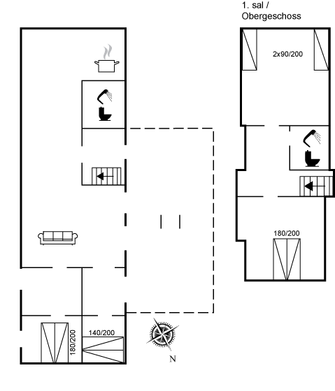 Obwohl das Sommerhaus zentral mitten in Gudhjem liegt, ist es friedlich zurückgezogen bei Bokul. Hier am Ende von Holkadalen (das einzige Felstal, das in einer Stadt endet) kann man einen schönen Spaziergang hinauf zum Gråmyr machen, einem See mit roten Seerosen und friedlicher Atmosphäre. Dennoch liegt das Haus nur 3-5 Gehminuten von Gudhjems vielen schönen Restaurants und dem gemütlichen und pulsierenden Sommerleben am Hafen entfernt. Vom Hafen aus kann man mit dem M/S Ertholm nach Christiansø fahren oder mit dem M/S Thor zu den Helligdomsklipperne – eine unglaublich schöne Tour, bei der man an den Helligdomsklipperne und dem Bornholmer Kunstmuseum von Bord gehen kann. Das Oluf Høst Museum bei Norresân, das von 1929 bis 1966 sein Zuhause und Atelier war, ist auf jeden Fall einen Besuch wert. Von Norresân aus kann man auch von dem Floß "Atlanten" ins Wasser springen, die jedes Jahr mitten im Hafen platziert wird. Wir wünschen dir einen schönen Urlaub in einem der wenigen Sommerhäuser in der einzigartigen Stadt Gudhjem.