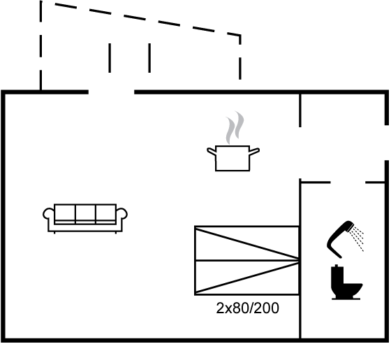 Die Wohnung befindet sich im Erdgeschoss und verfügt über eine kleine private Terrasse zur Straßenseite hin – direkt gegenüber vom Schwimmbad Gudhjem Svømmehal, das sicherlich zu einem Besuch einlädt, wenn das Meer zu kalt ist. Die Ferienwohnung bietet dir ein helles Wohnzimmer mit Ess- und Entspannungsbereich sowie ein großes Doppelbett – ideal für euch als Paar auf Entdeckungstour auf Bornholm. Außerdem gibt es eine gut ausgestattete Küche und ein schönes Badezimmer.