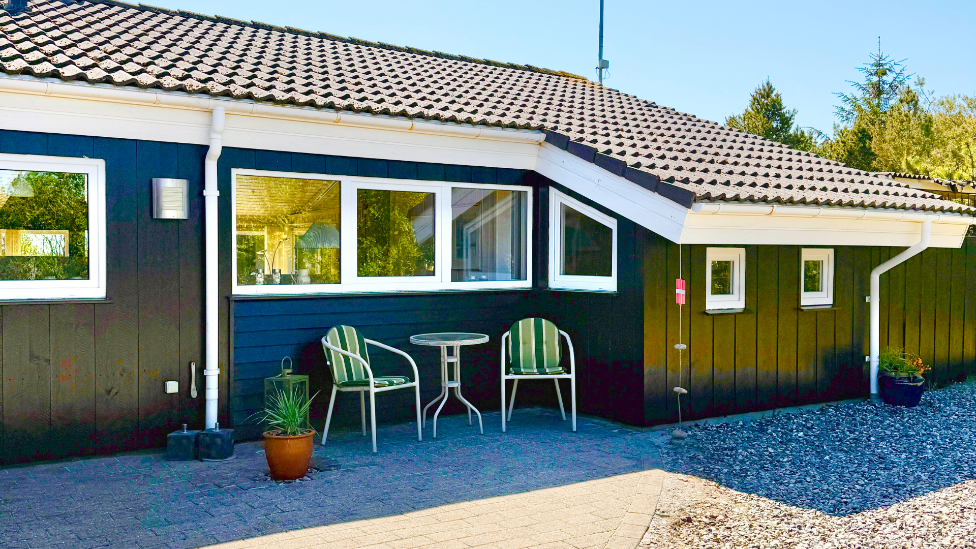 Das Haus liegt am Ende einer privaten Sackgasse und bietet drei Schlafzimmer mit Doppelbetten und ein Schlafsofa, insgesamt acht Schlafplätze. Es gibt ausreichend Platz für große und kleine Gäste.