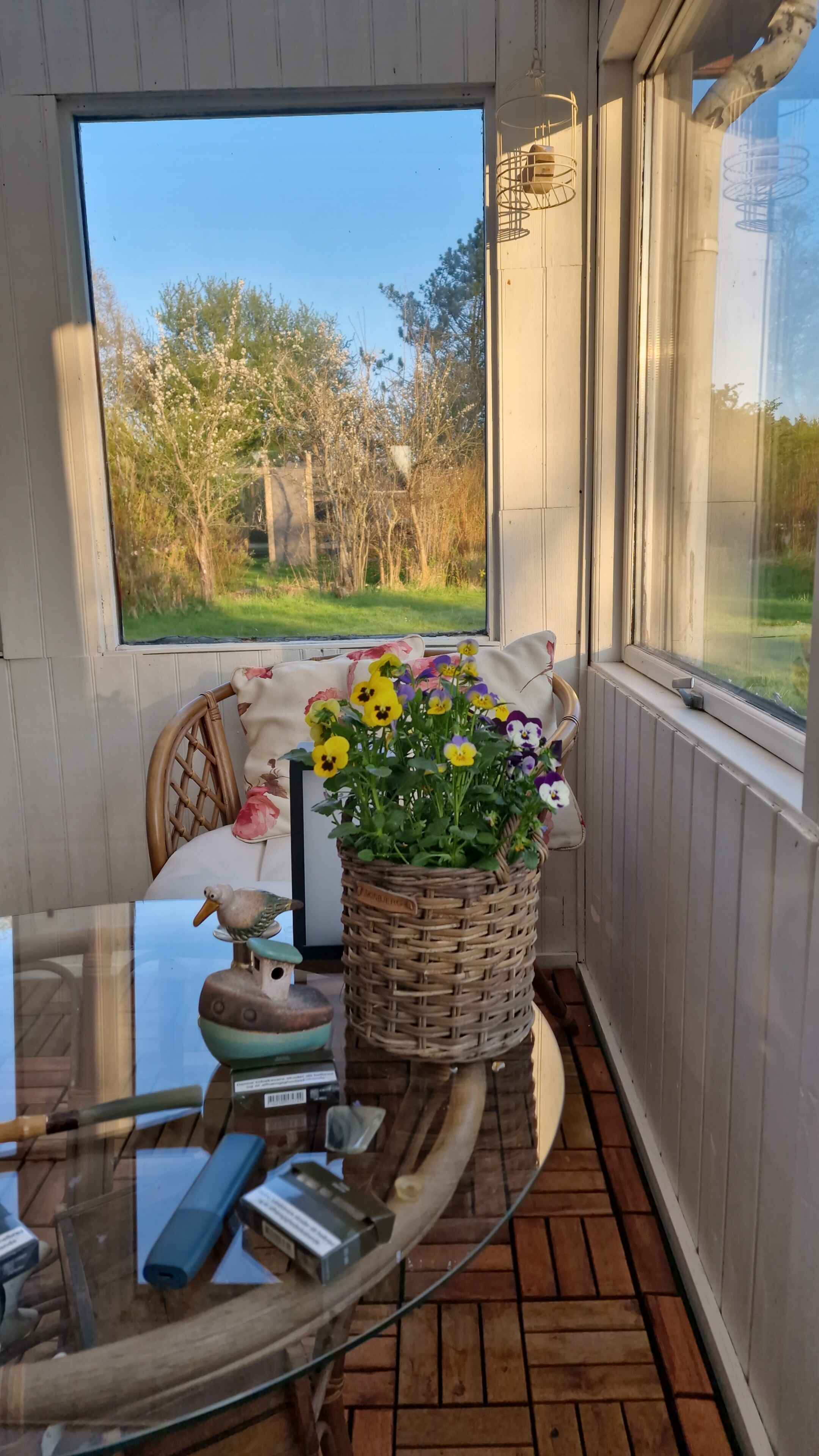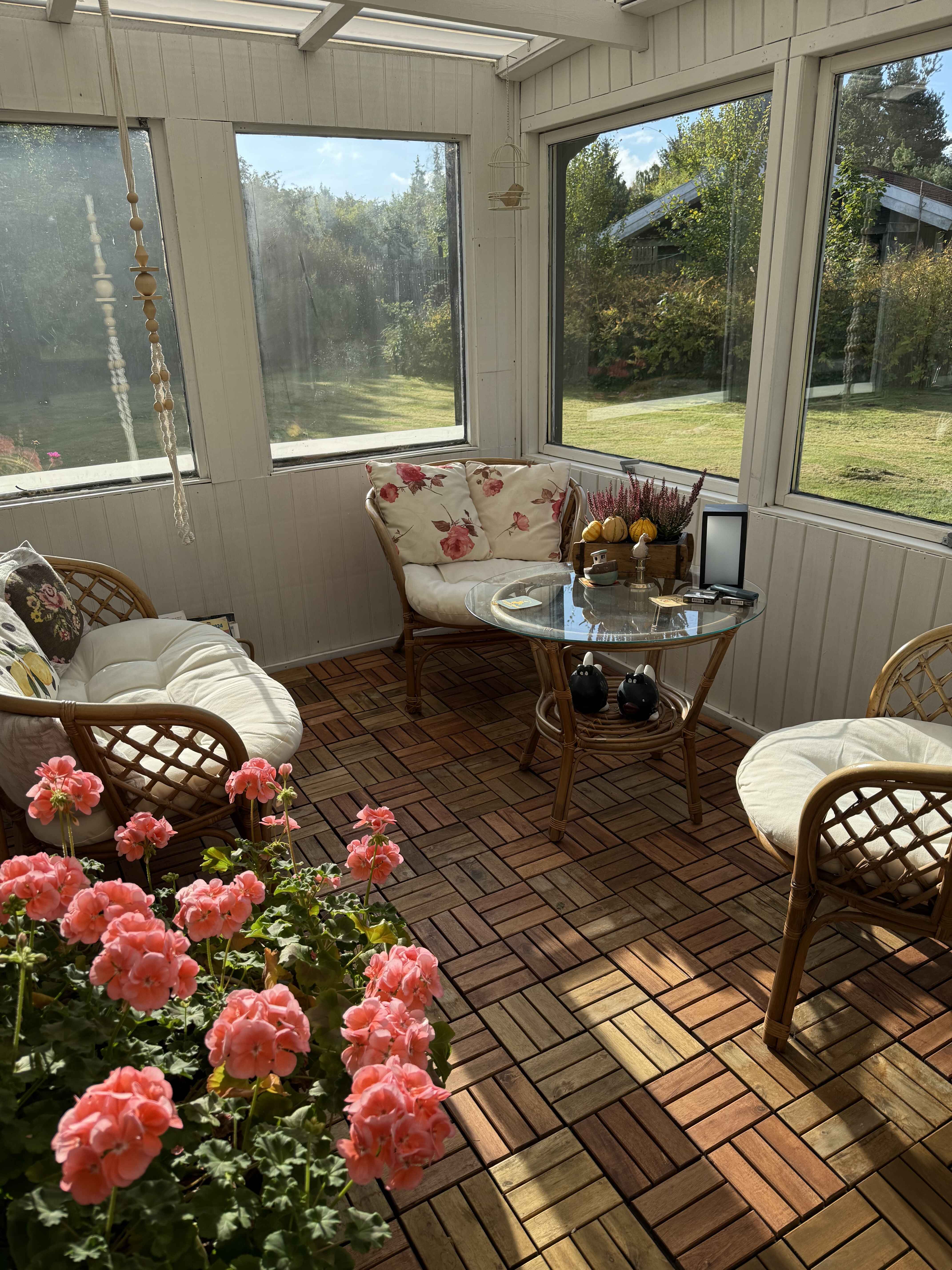 Wunderschöner Wintergarten mit Rattanmöbeln – der Lieblingsplatz der Gäste für Morgenkaffee sowie Wein- und Spieleabende.