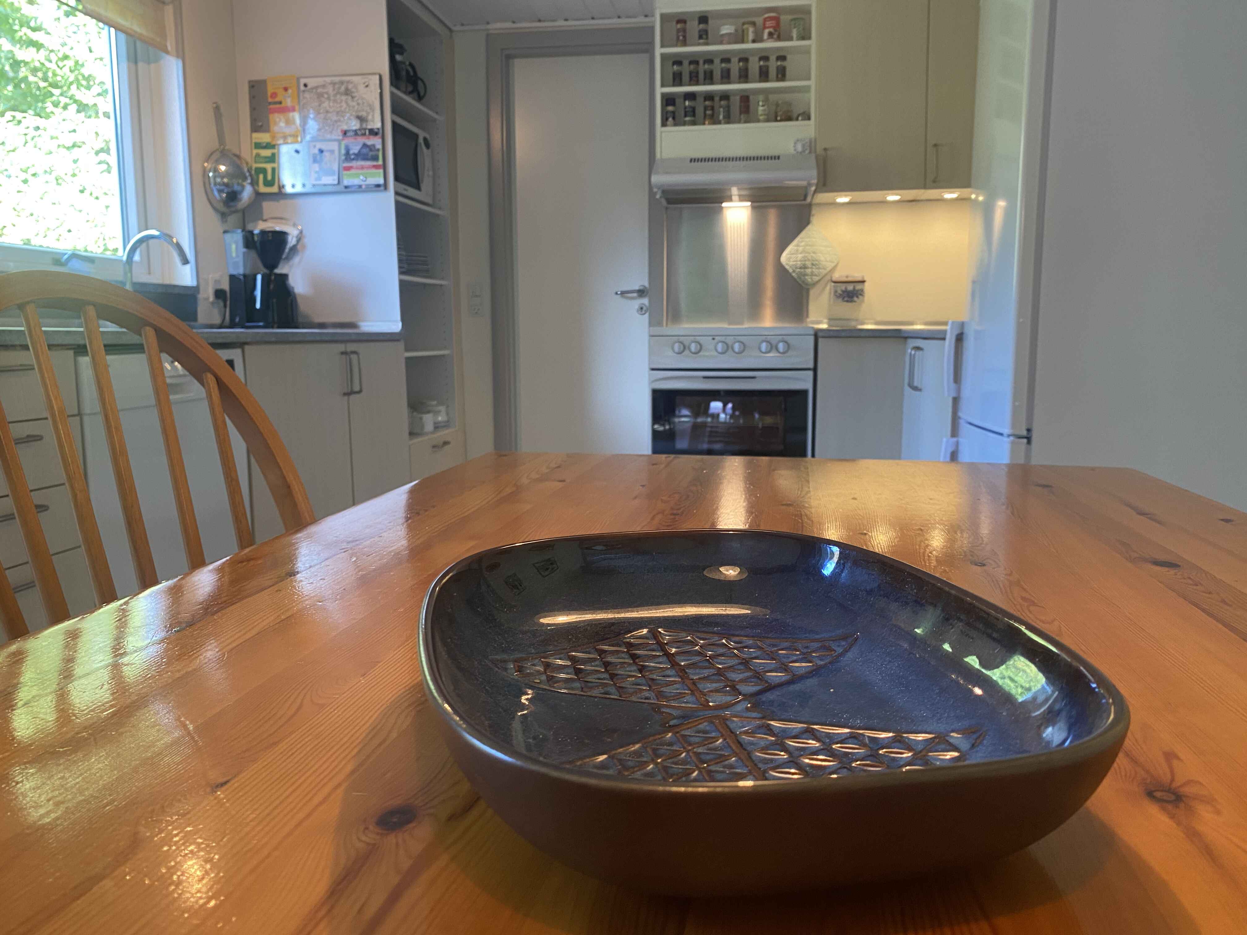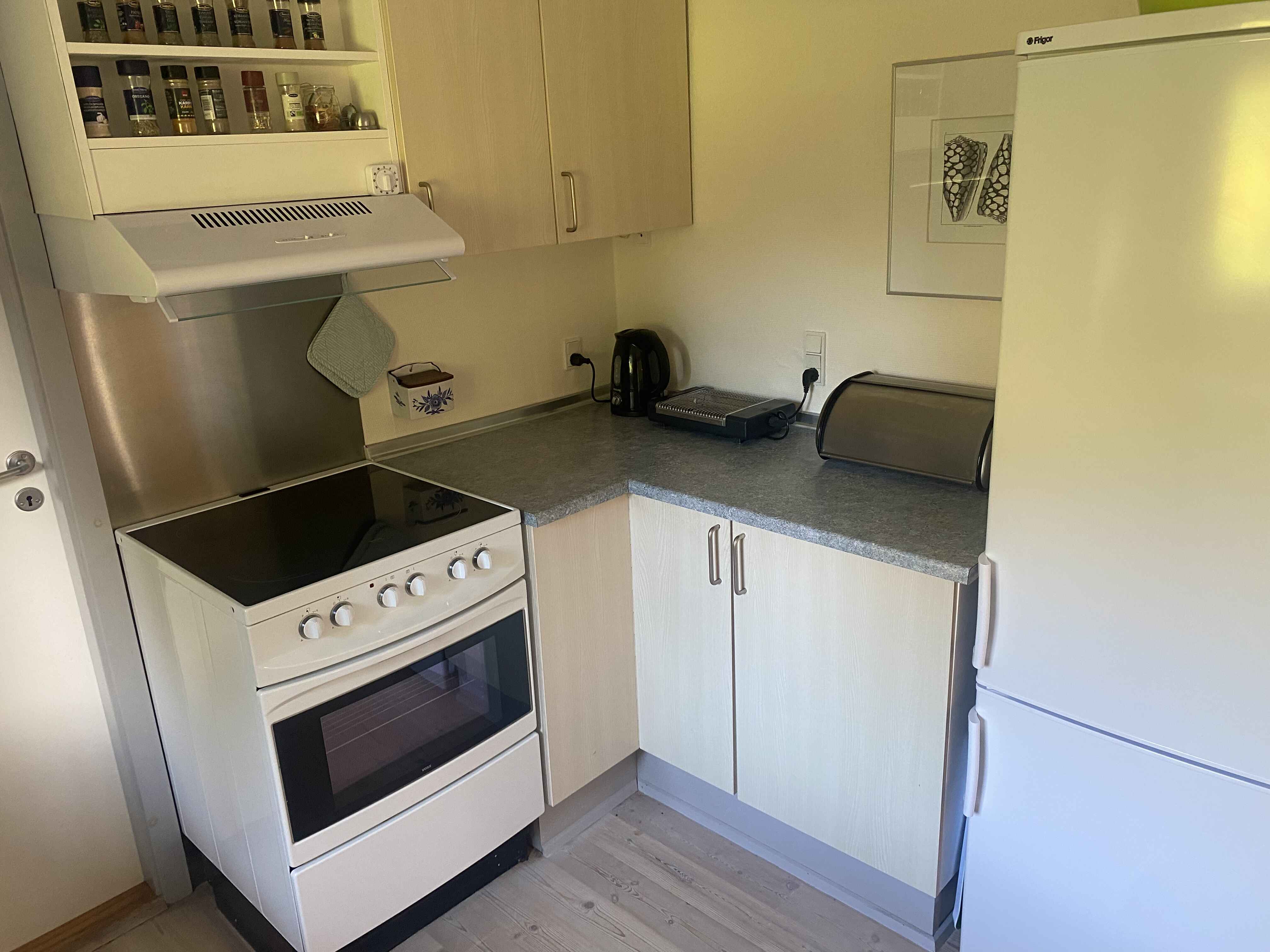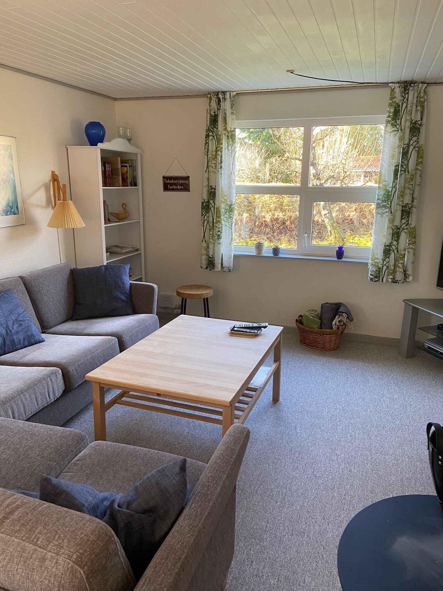 Huset har et dejligt køkken med opvaskemaskine i åben forbindelse med en praktisk spiseplads og med stuen, der er indrettet mig en stor hjørnesofa, som familie kan hygge sig i foran fjernsynet. Skal der spilles brætspil, han der også et “spillebord” med kurvestole omkring. Familier kan være sammen, og de kan også hygge sig med aktiviteter. Den fyrer og har varmepumpe.