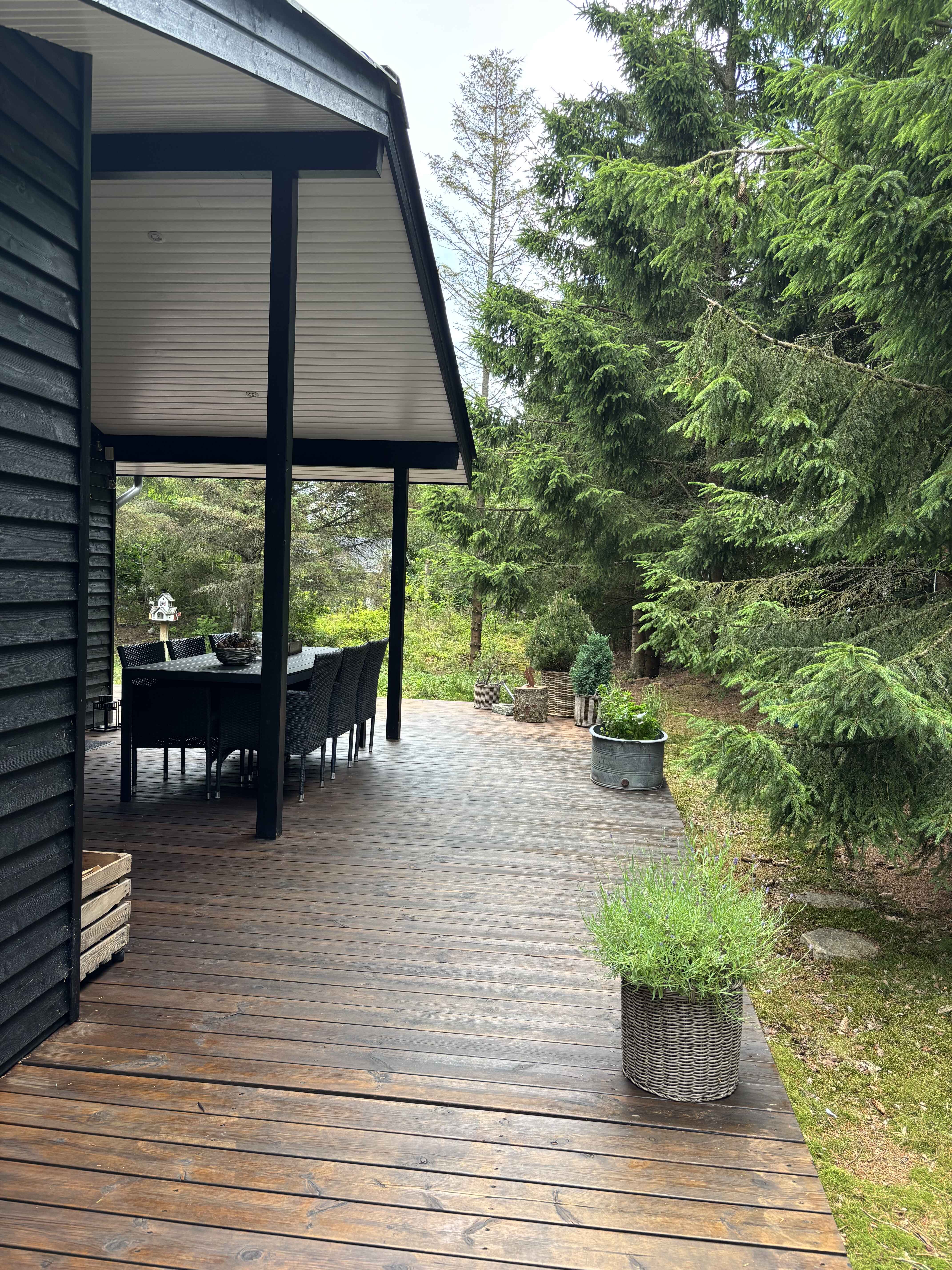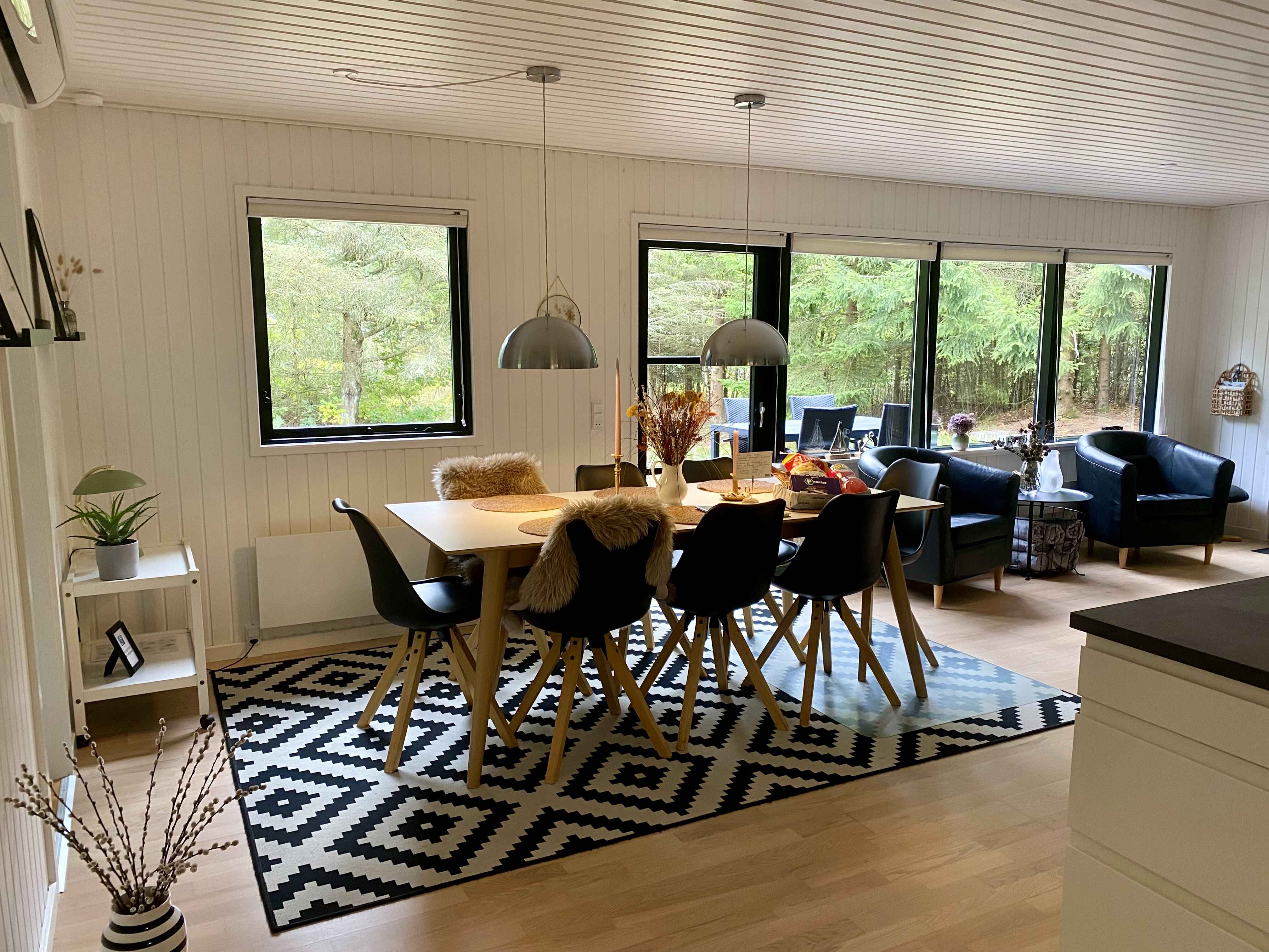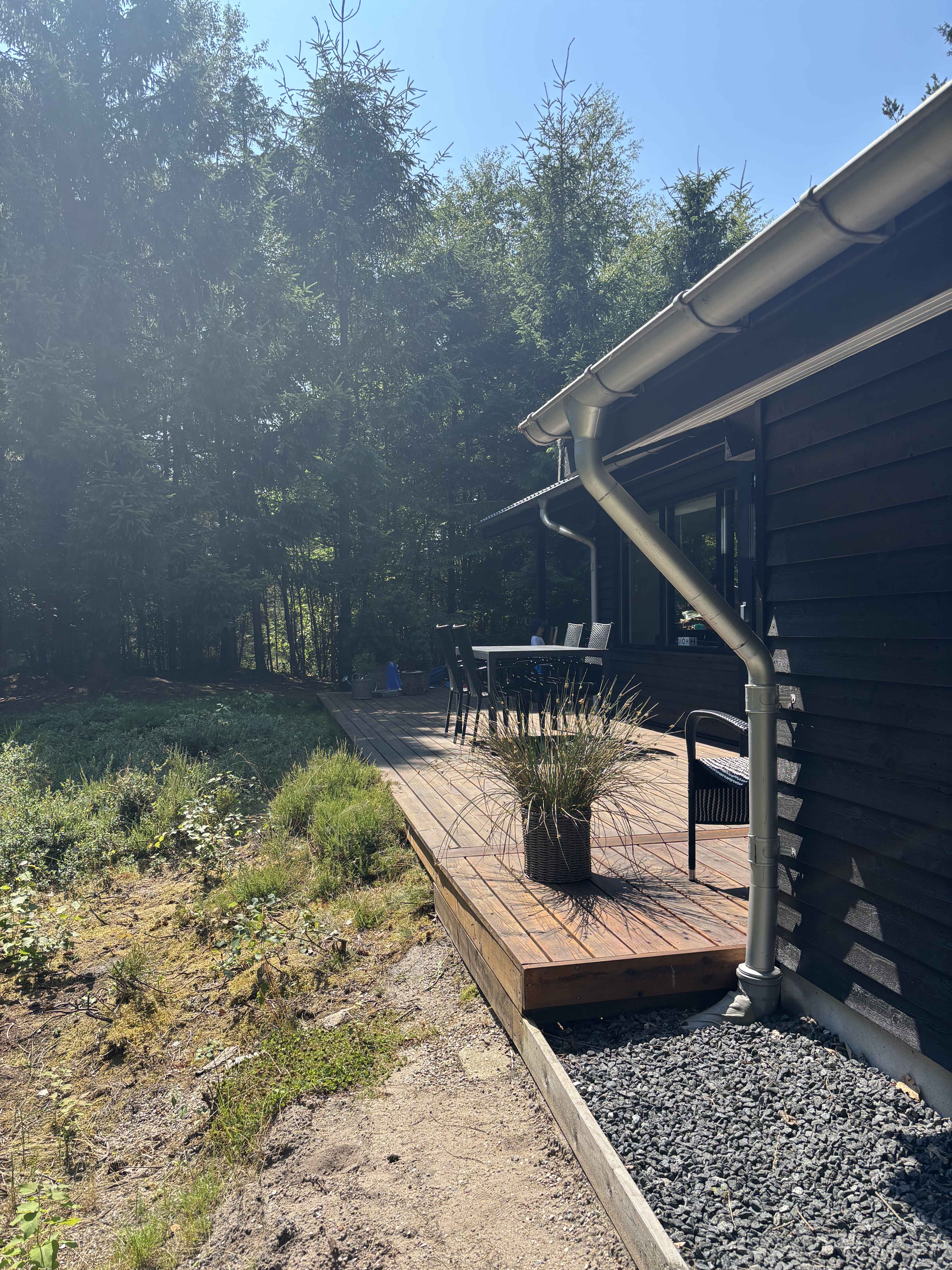 Das Ferienhaus liegt auf einem völlig abgeschiedenen Naturgrundstück, umgeben von hohen Kiefern. Hier genießen Sie Ruhe und Privatsphäre, mit Morgenden, die oft vom Vogelgesang begleitet werden, und der Möglichkeit, Wildtiere aus nächster Nähe zu beobachten. Die Einrichtung ist funktional und auf entspannte Urlaubstage ausgelegt.