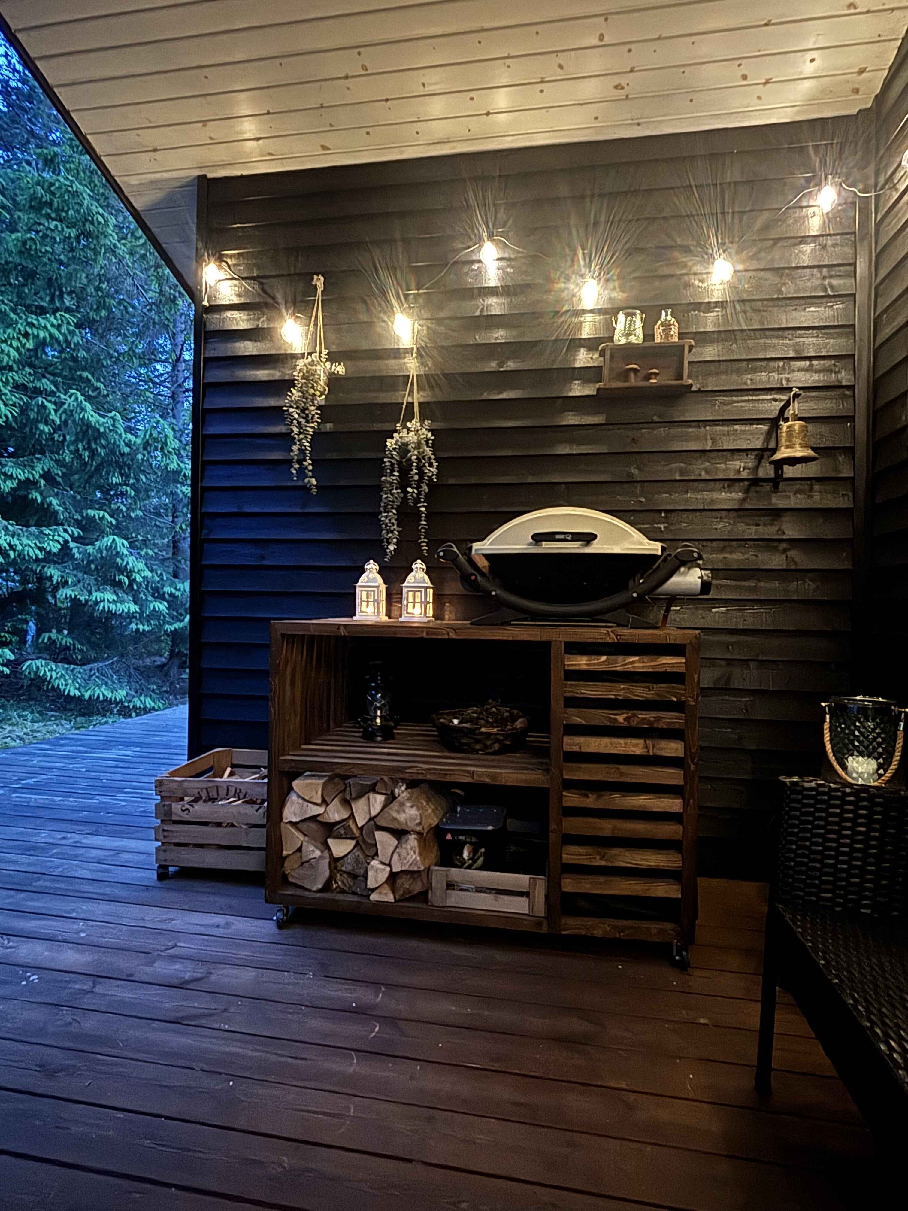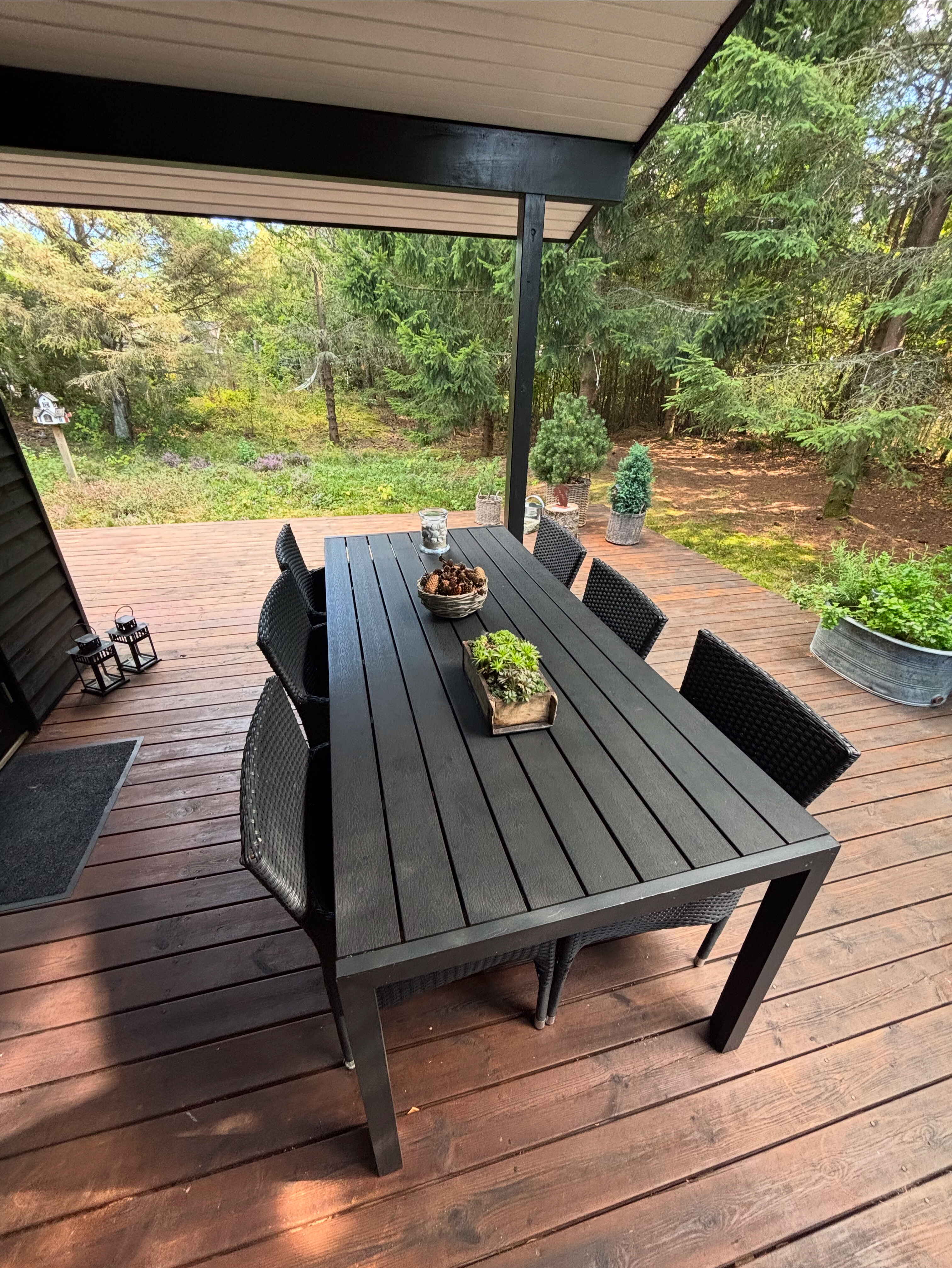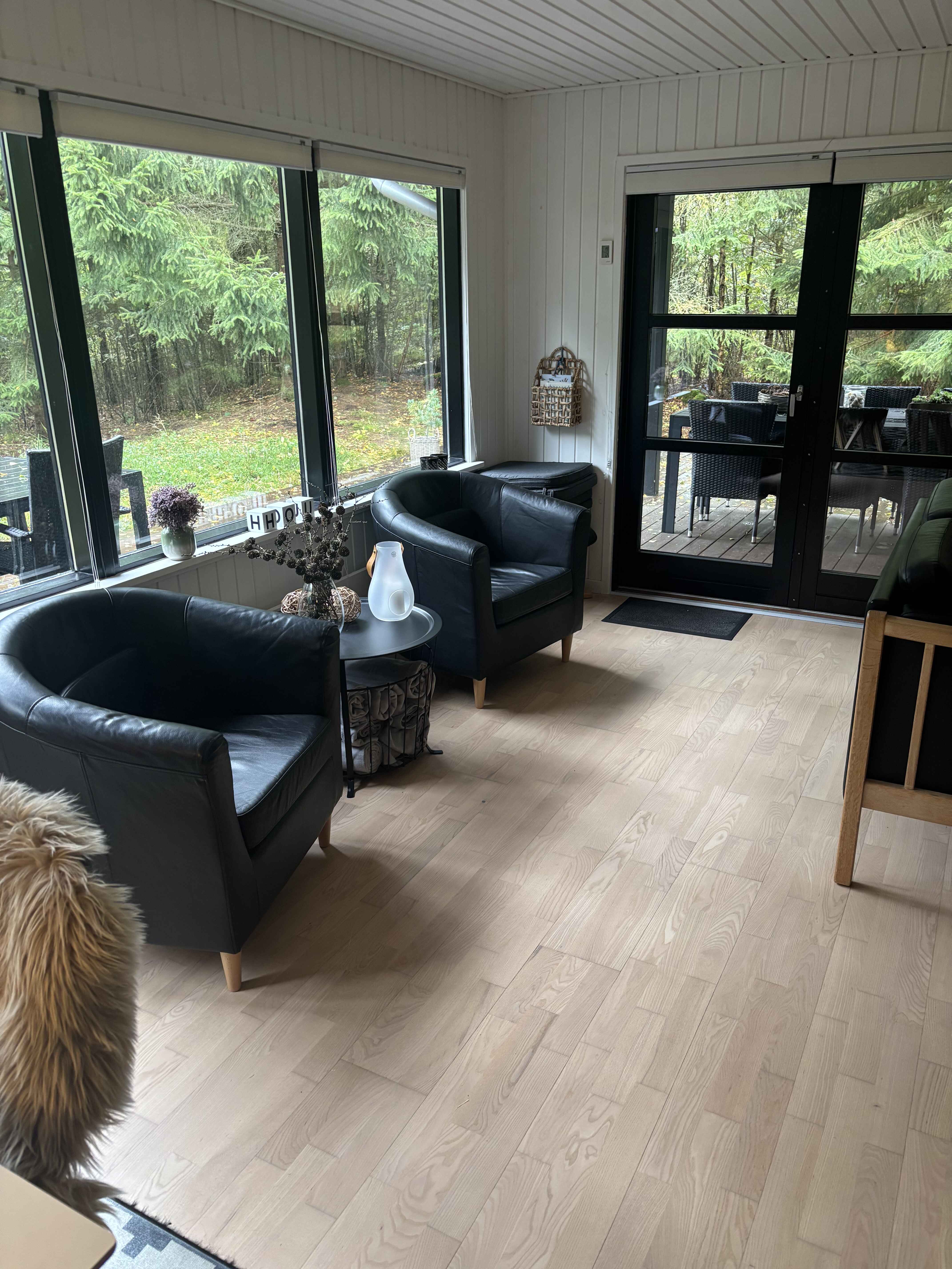 Das Ferienhaus liegt auf einem völlig abgeschiedenen Naturgrundstück, umgeben von hohen Kiefern. Hier genießen Sie Ruhe und Privatsphäre, mit Morgenden, die oft vom Vogelgesang begleitet werden, und der Möglichkeit, Wildtiere aus nächster Nähe zu beobachten. Die Einrichtung ist funktional und auf entspannte Urlaubstage ausgelegt.